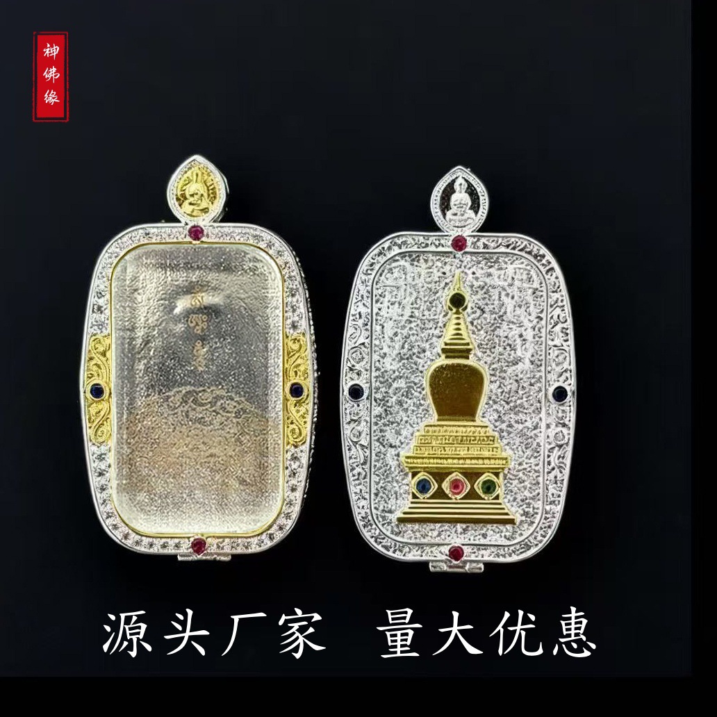 Xizang Style Wutai Mountain White Pagoda Thangka Ga Wu Box Xizang Pure Copper Pendant Necklace Manufacturer Wholesale New Buddhist Amulet