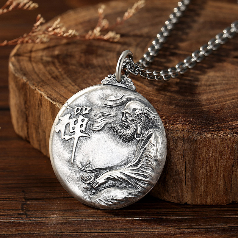 Chiba Original Design Ethnic Style Zen Pendant Thai Silver Men's Retro Solid Round Buddha Brand Personalized Necklace