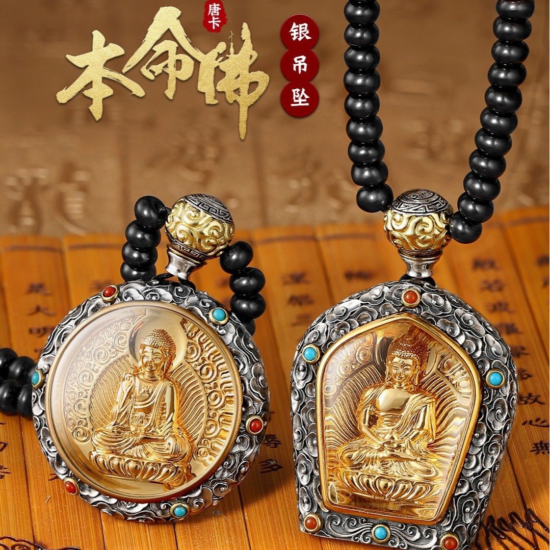 Thangka Wholesale Necklace Twelve Zodiac Benming Buddha Buddha Brand Xizang Culture Square Pendant Patron Saint Necklace New