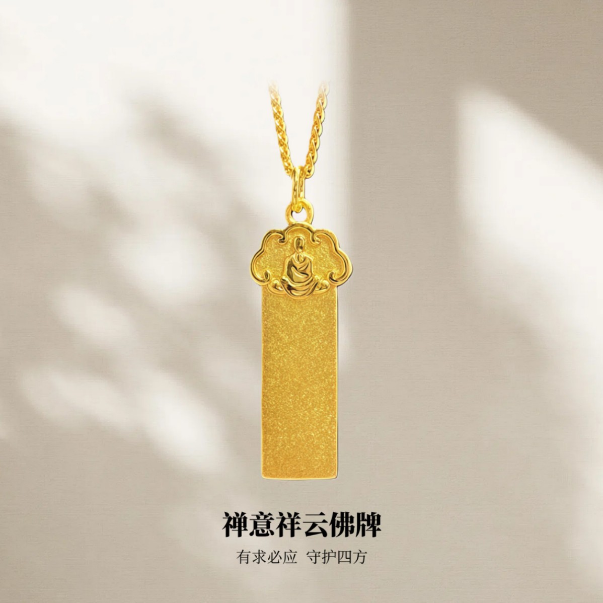 Zen Xiangyun Buddha Pendant Ancient Gold-Plated Frosted Brushed Safety Necklace Women's Simple Accessible Luxury Clavicle Chain