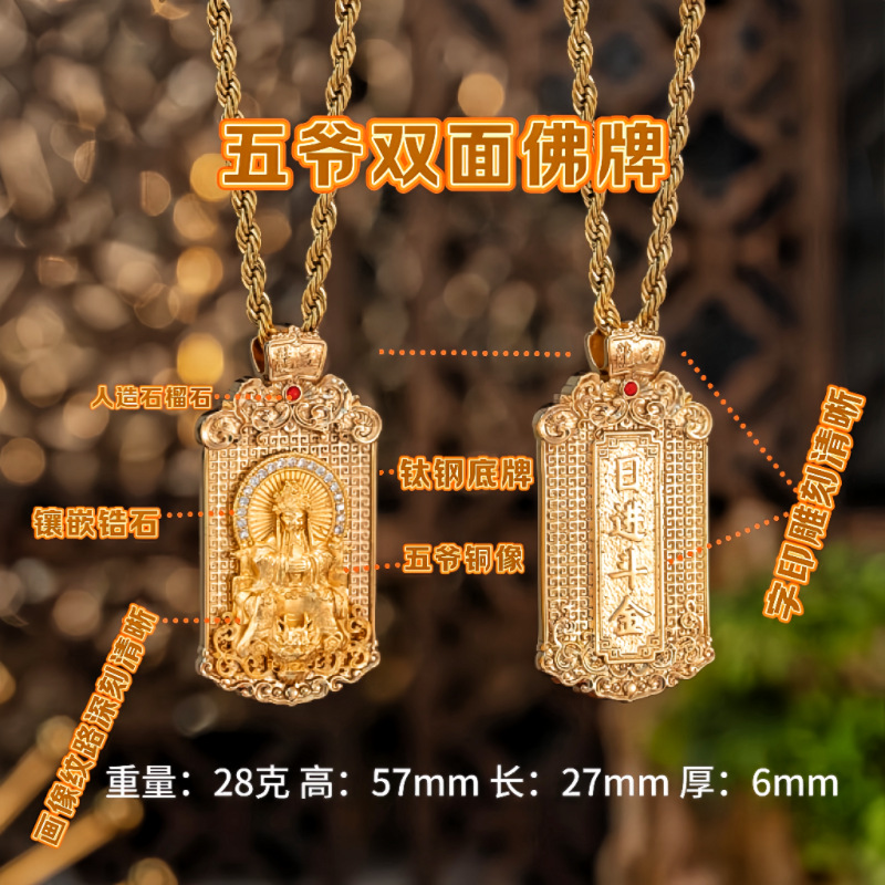 Five Master Buddha Amulet Pendant Wutai Mountain Twelve Zodiac Baifu Pendant Gold Store Same Style Square Light Luxury Necklace for Men and Women