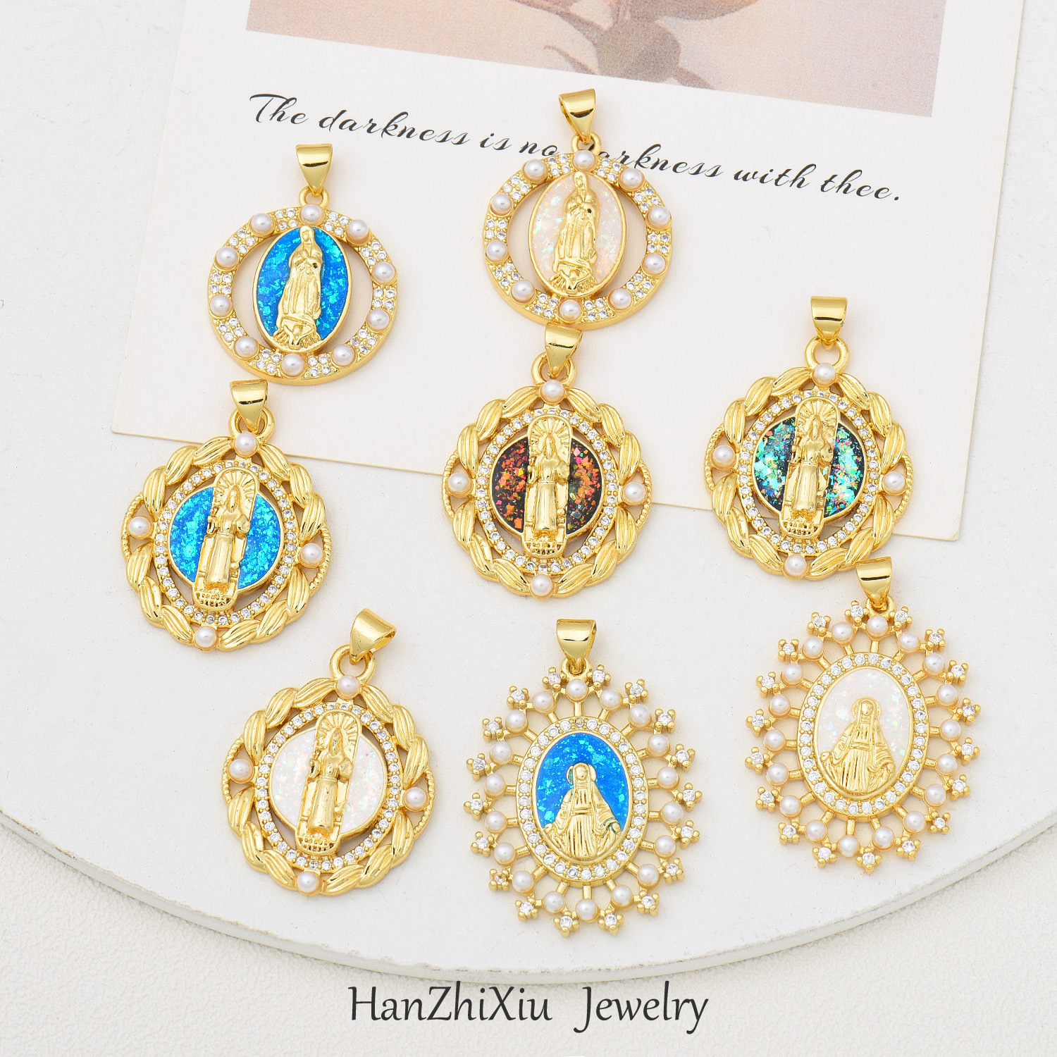 Opal Copper Gold-Plated Oval Virgin Mary Religious Style Pendant Necklace Color-Preserving DIY Accessories Clavicle Chain