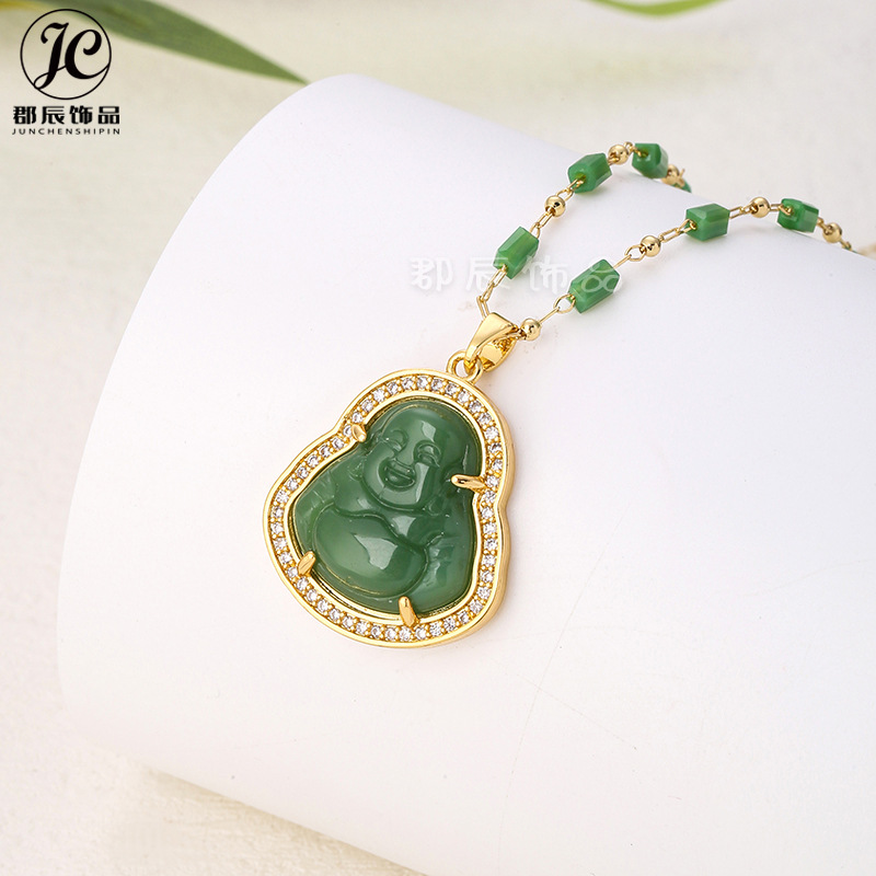 New Full Diamond Imitation Chalcedony Big Belly Maitreya Necklace Temperament All-match Fashion Buddha Slub Chain Imitation Agate Pendant
