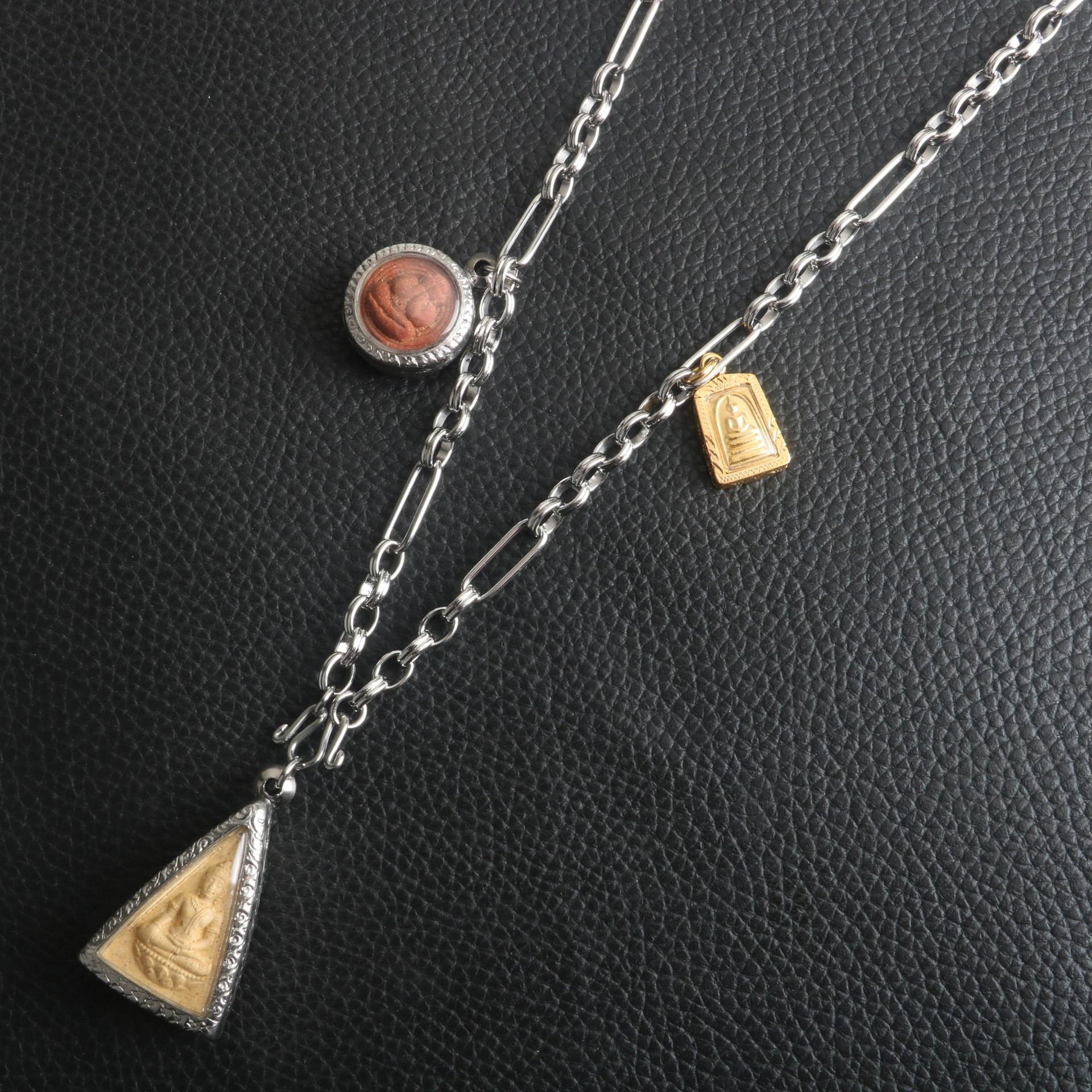 Guanyin Buddha Pendant Hanging Chain Stainless Steel Fancy Splicing Chain Thai Buddha Brand Chain Titanium Steel Men's and Women's Necklace