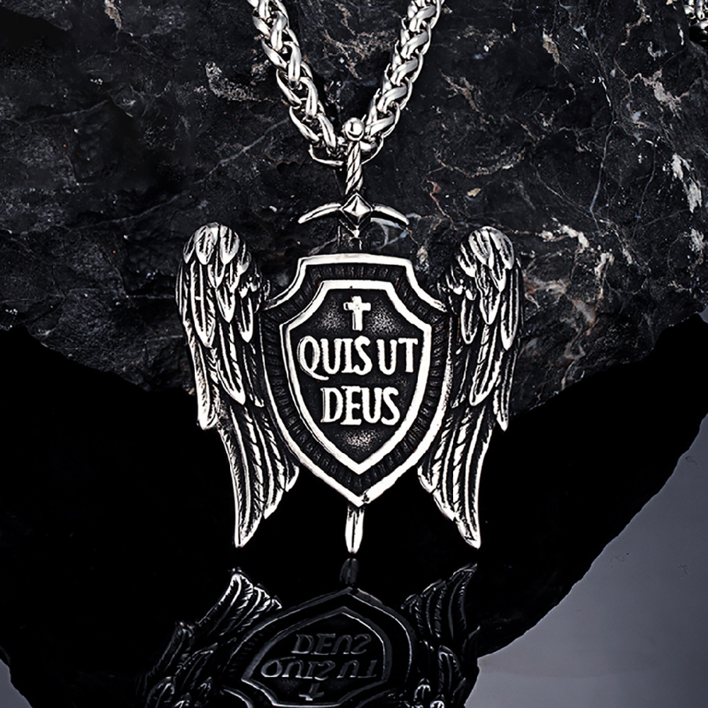 Wings Shield Sword Saint Michael Pendant Stainless Steel Chain Necklace Men's Religious Guardian Retro Personalized Jewelry
