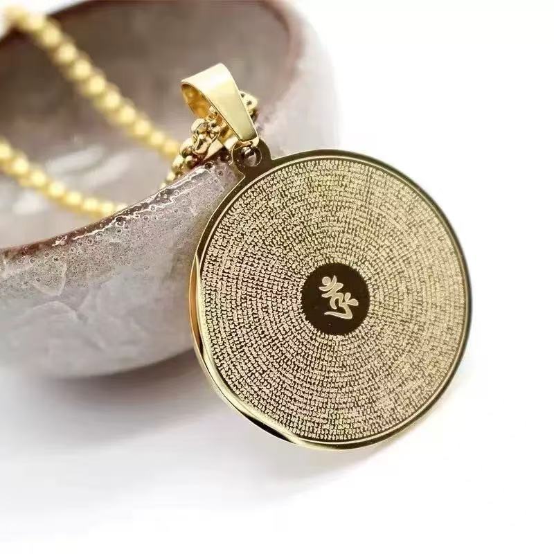 Vintage Titanium Steel Buddha Pendant Lurangama Curse Pendant Simple Scripture Great Suit Necklace Guofeng Pendant Men's and Women's Jewelry