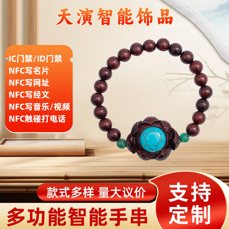 Rosewood Lotus Turquoise Bracelet Nfc Readable and Writable Web Page Buddhist Scriptures Rosary Idic Access Card Smart Bracelet