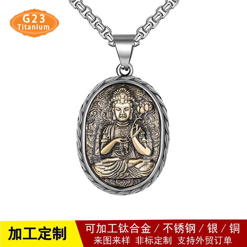 Factory Customized G23 Titanium Alloy Buddha Pendant Personalized Retro Pure Titanium Embossed Buddha Statue Tag Necklace Pendant