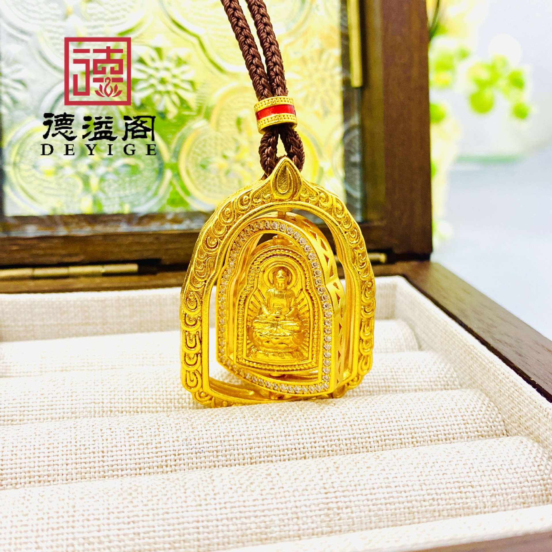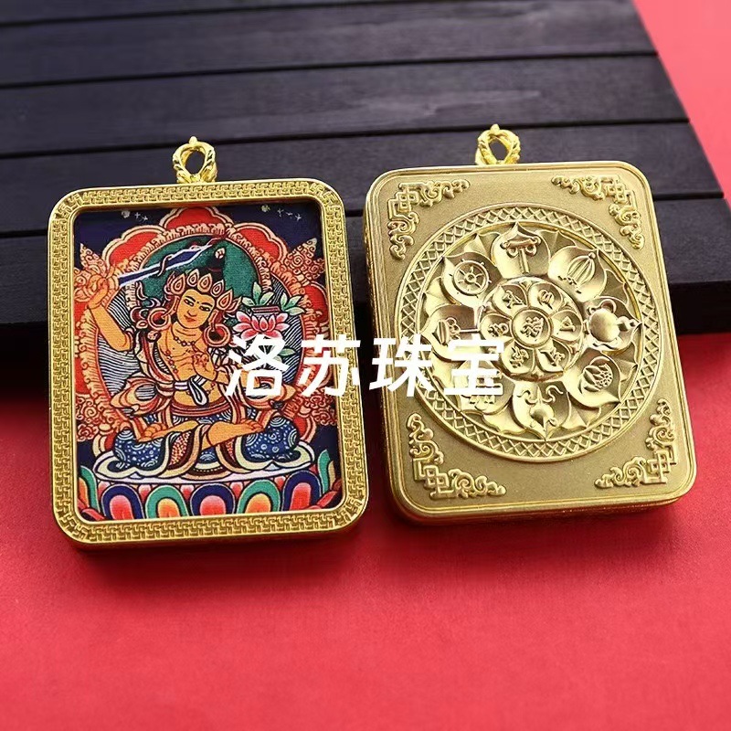 Hand-Painted Gold-Plated Three-Dimensional Double-Sided Eight Guardian Thangka Xizang-Style Gau Box Pendant Portable Buddha Necklace Xizang Style