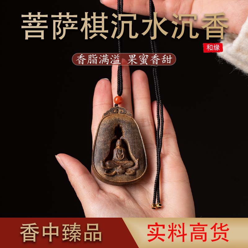 Scarce High-Grease Bodhisattva Chess Submerged-Grade Non-Phase Buddha Agarwood Pendant Handmade Carved Gift-Giving Pendant