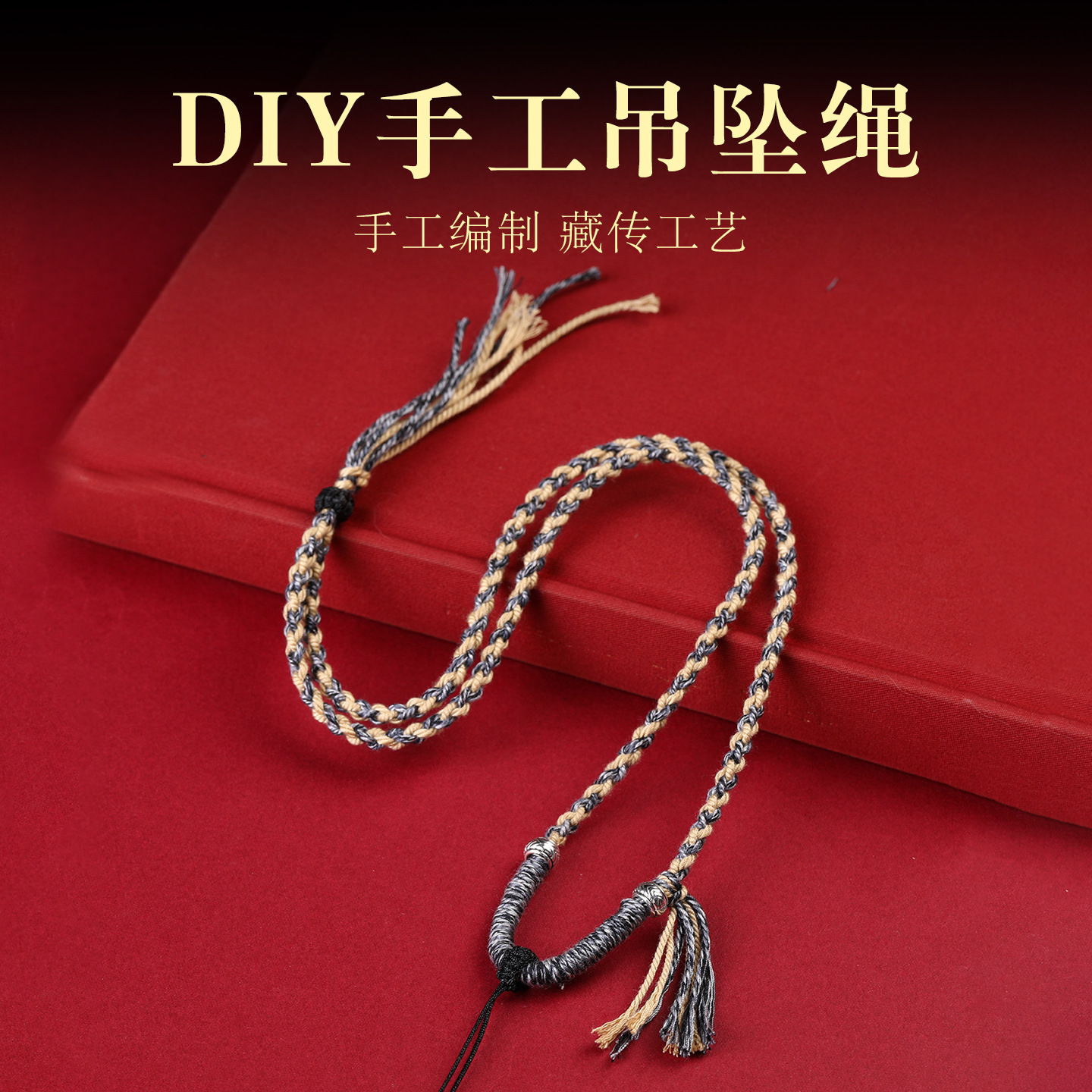 Xizang-Style Necklace with Xizang-Style Hand-Woven Cotton Thread, Four-Strand Woven Pendant Necklace, Thangka Hanging Rope, Buddha Amulet Pendant