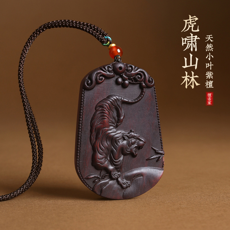 Small-Leaf Red Sandalwood Tiger Roaring in the Forest Pendant Hand Piece Twelve Zodiac Tiger Wooden Necklace Pendant Buddha Amulet Car Hanging