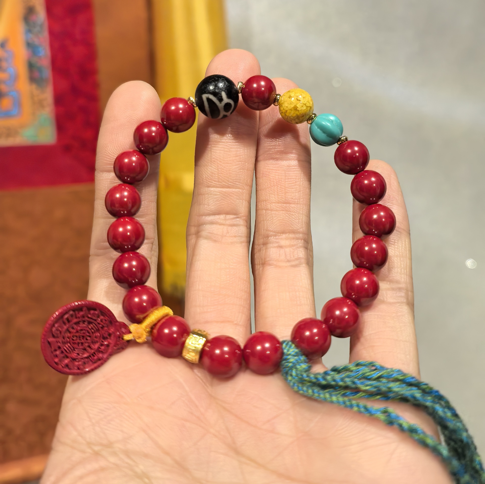 Duoji Jingyuan Imperial Sand Bracelet, Cinnabar Sand Original Design, Source Buddhist Beads, Xizang Cultural Art, Handmade