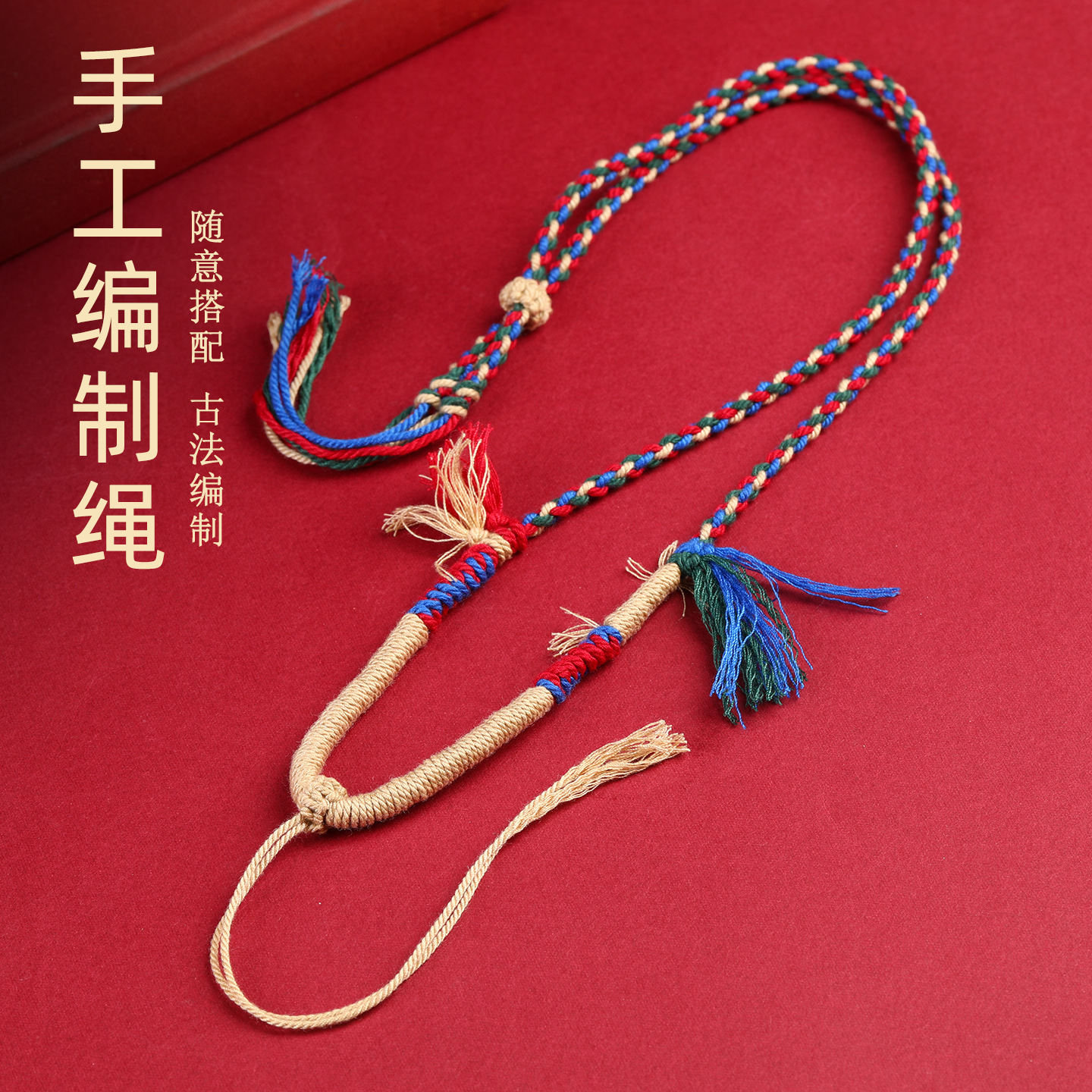Five-Way God of Wealth Necklace Xizang Handmade Woven Cotton Shoes Eight-Strand Woven Pendant Necklace Thangka Hanging Rope Buddha Amulet Pendant