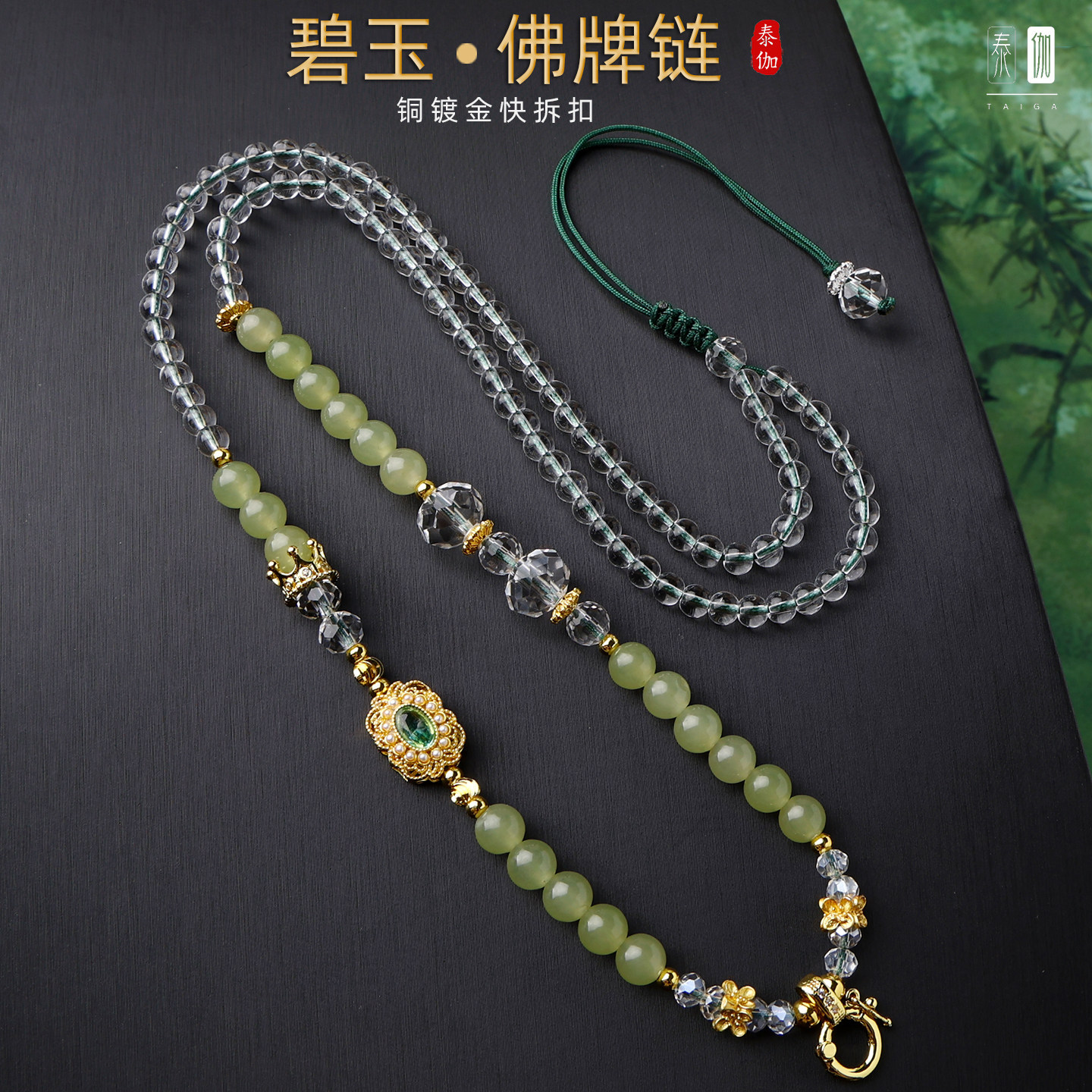 New Chinese-Style Pendant Chain with Jade Round Beads 4mm Crystal Buddha Amulet Universal Quick-Release Clasp Necklace Adjustable Retro