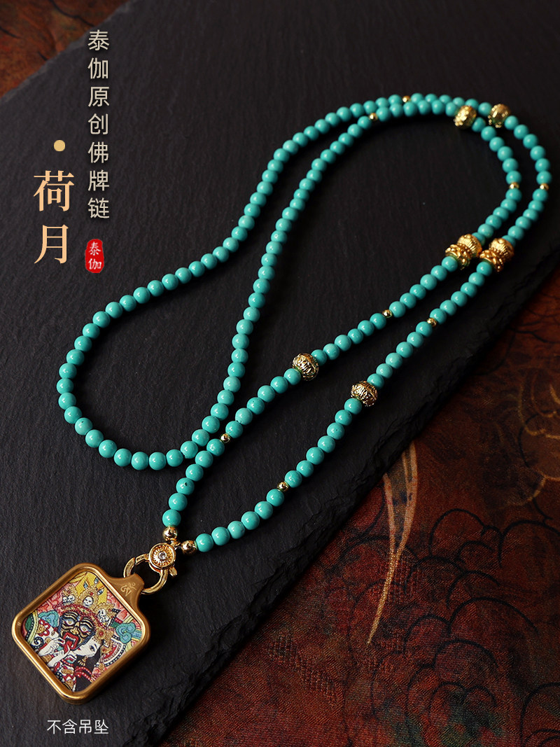 Thai Buddha Amulet Necklace with Tangka Pendant, High Imitation Turquoise Hanging Rope, Simple New Chinese Style National Necklace