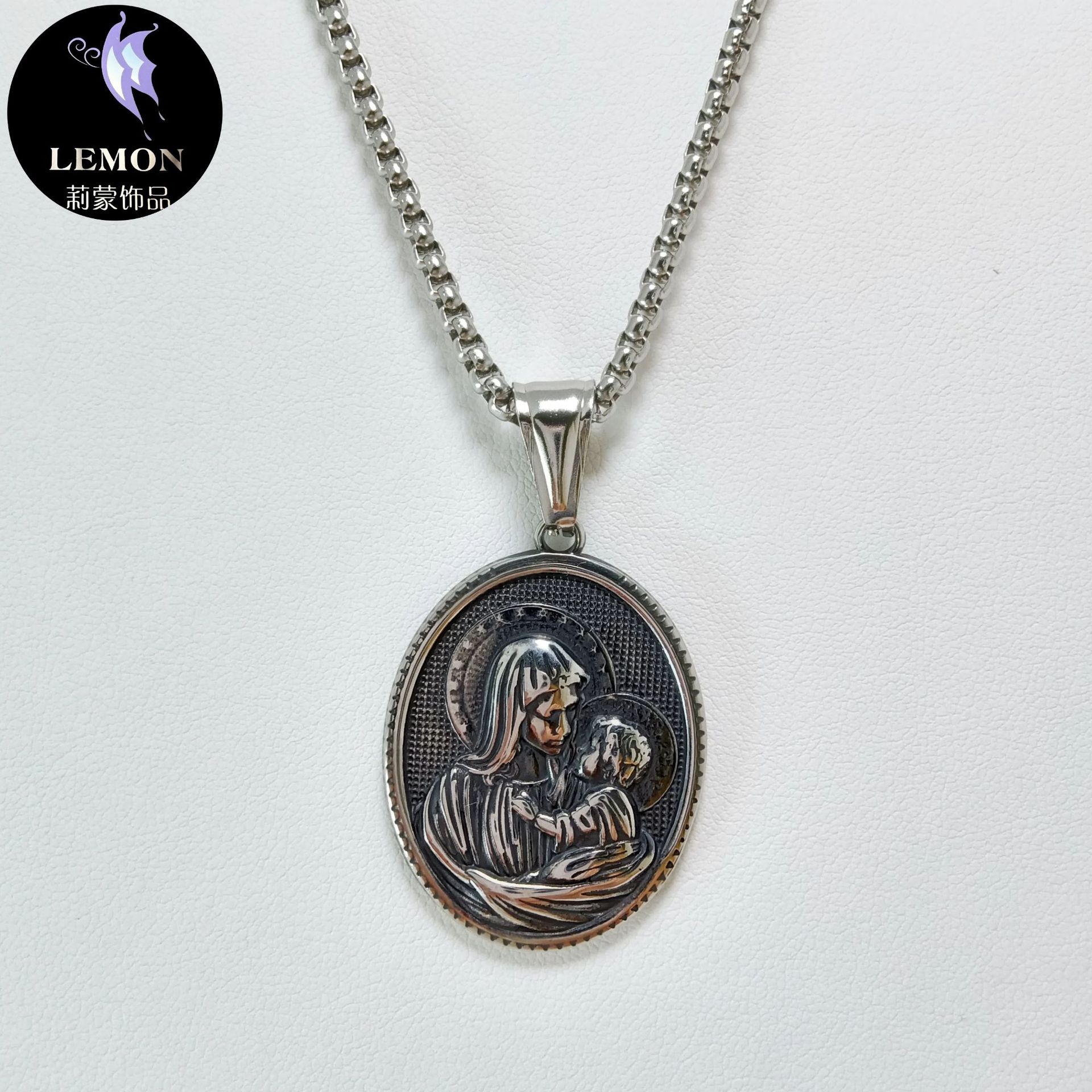 Manufacturer's Supply, Aliexpress E-Commerce Hot-Selling Religious Figure Head Portrait of the Virgin Mary Stainless Steel Pendant Necklace Jewelry Accessories