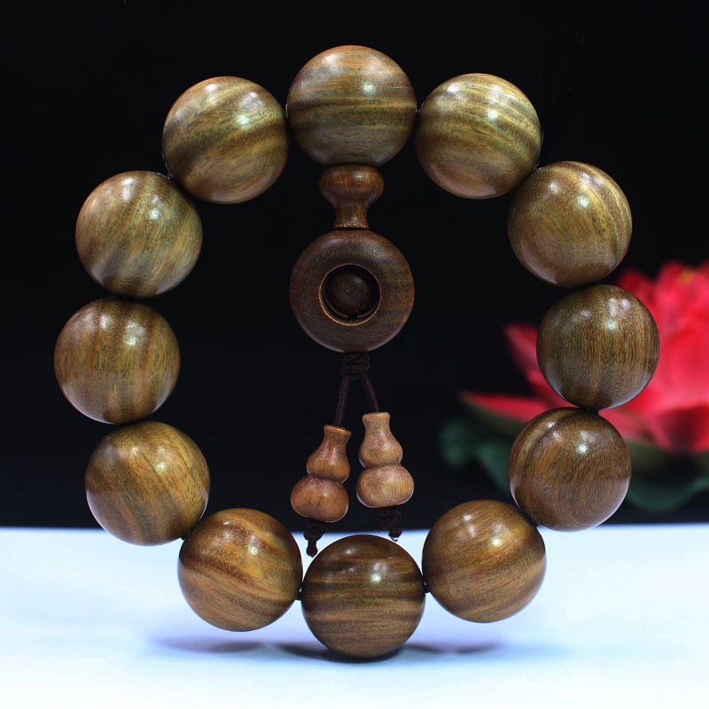Green Sandalwood Beads Bracelet 20mm Sandalwood Old Material Submerged Bracelet Men and Women Couple Rosary Beads Wen Play Wooden Jewelry