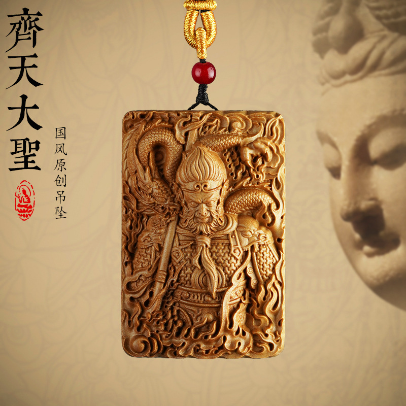 Original Black Myth Wukong Pendant Solid Wood Carving Monkey King's Aggressive Fight against Buddha Male Body Protection Necklace Buddha Card