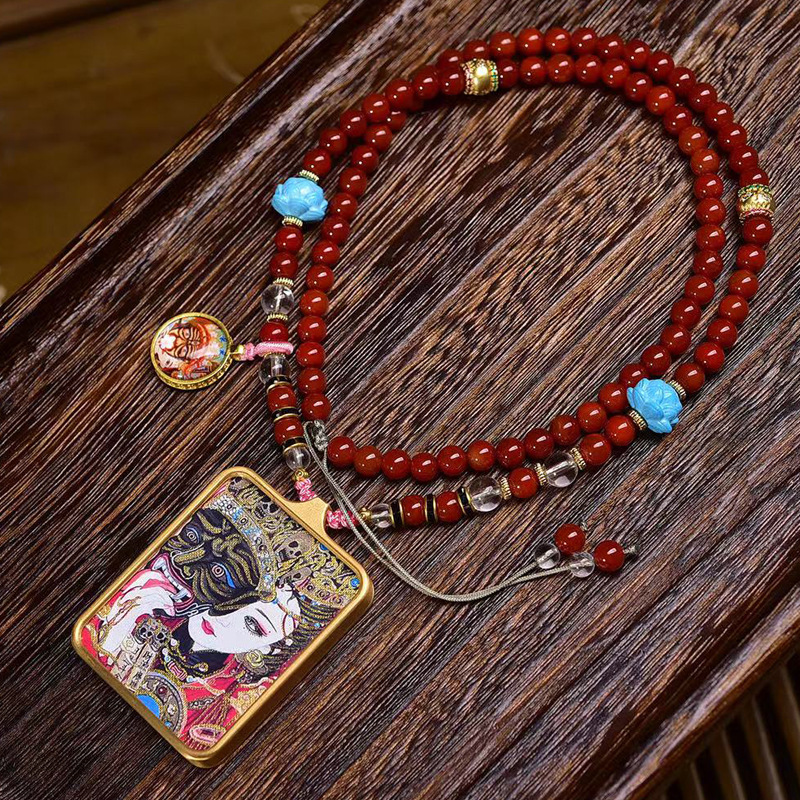 Tangka Buddha Amulet Zakiram Hand-Woven Pendant, Thousand Miles of Rivers and Mountains, Three Lives Three Worlds, Little Red Book Same Style Necklace