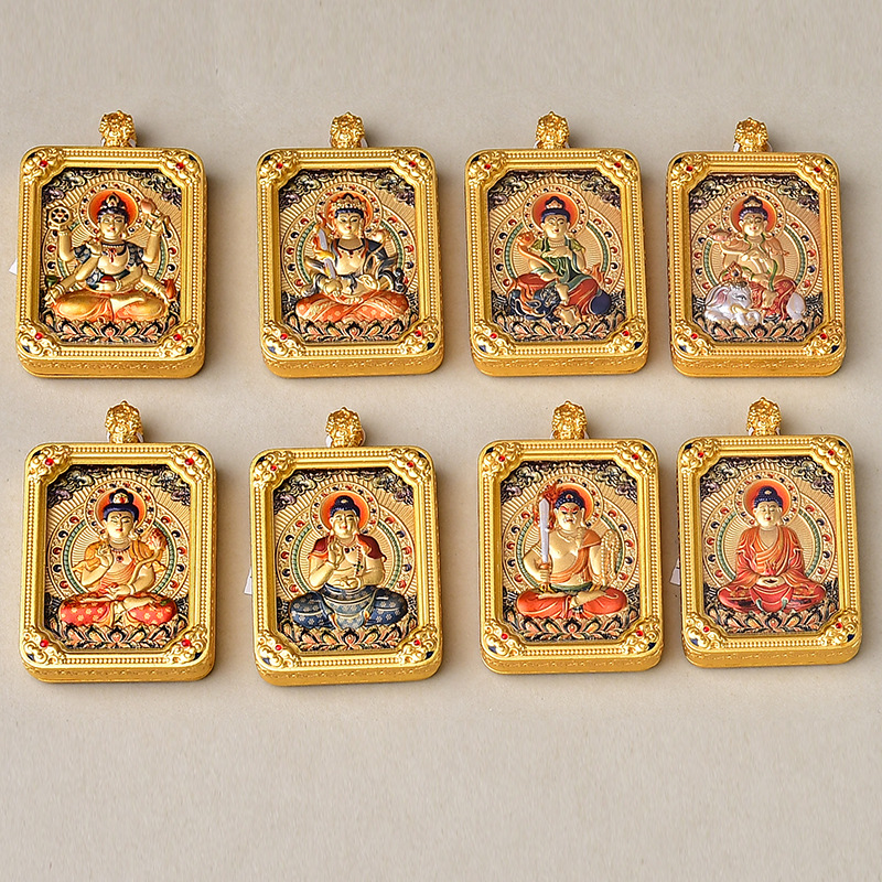 Wutai Mountain New Thangka Five Elders Square Small Eight Guardian Deities Pendant Buddha Amulet Necklace Double-Sided Three-Dimensional