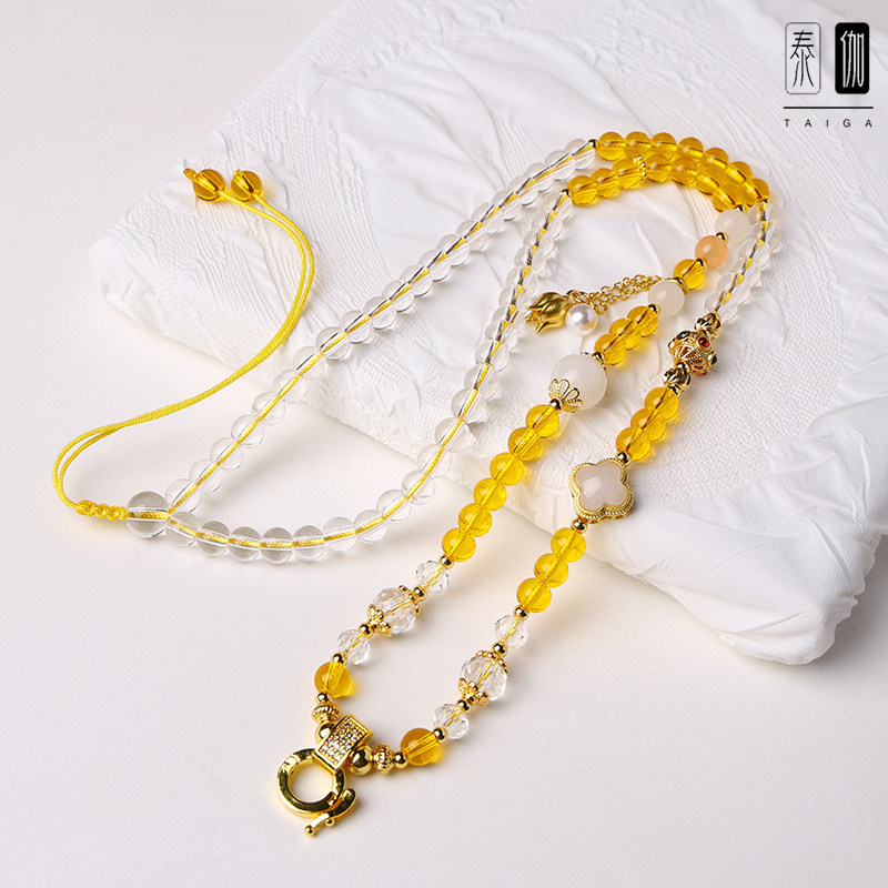Thai Yellow Crystal White Crystal Thai Buddha Amulet Chain Round Bead Necklace Women's Pearl Tassel New Chinese Style Other None