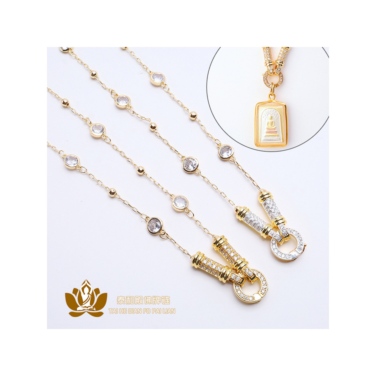 Thailand Buddha Brand Necklace 18k Gold Metal Chain Universal Buckle Quick-release Buckle Micro Diamond Hanging Chain Pendant Rope