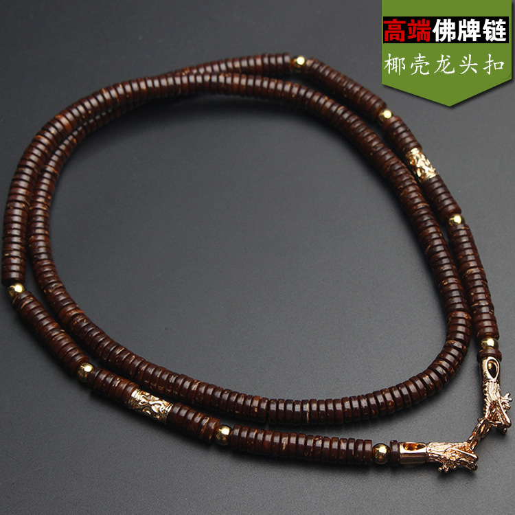 Thai Natural Primary Color Coconut Shell Buddha Amulet Chain Wooden Hanging Chain Necklace Classy Faucet Buckle Buddha Amulet Chain Exquisite