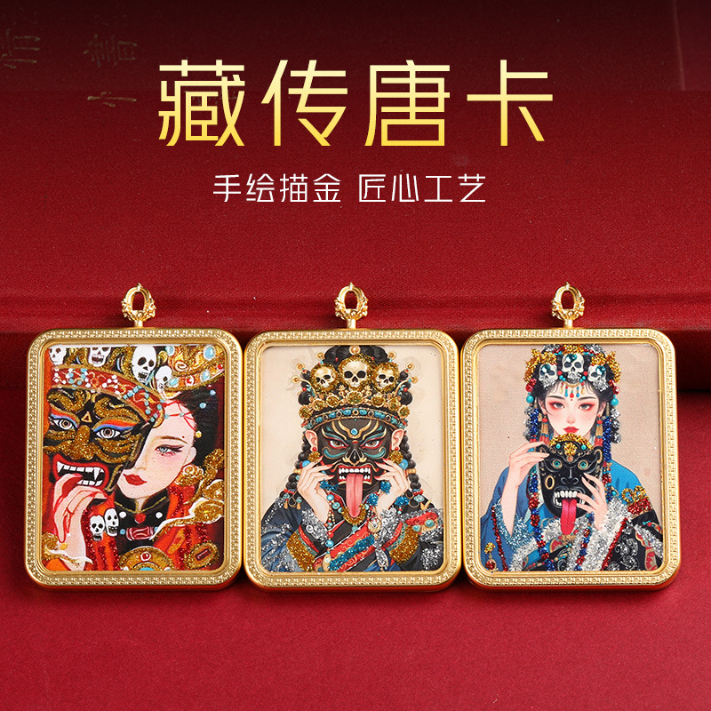 Hand-Painted Black Gold and Black Gold Thangka Pendant with Eight Patron Saints and Buddha Pendants (Large Quantity Discount)