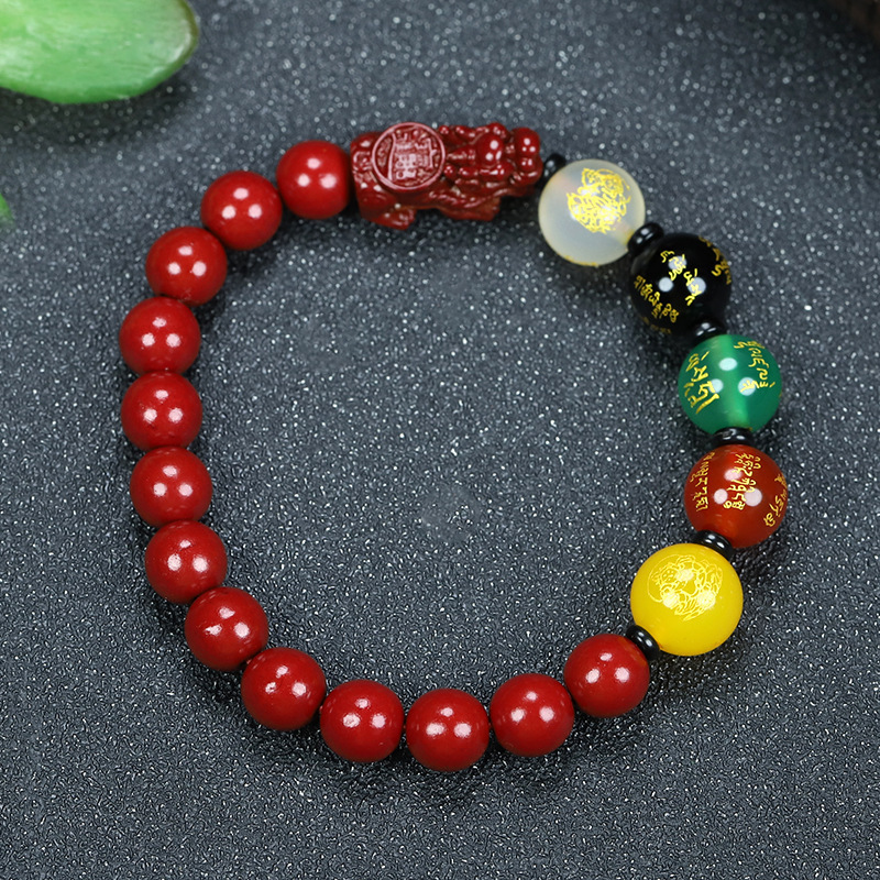 Raw Ore Cinnabar Bracelet for Men, Five-way God of Wealth Plus Pixiu Transfer Beads for Men, Zodiac Year Gift, Cinnabar Bracelet for Women