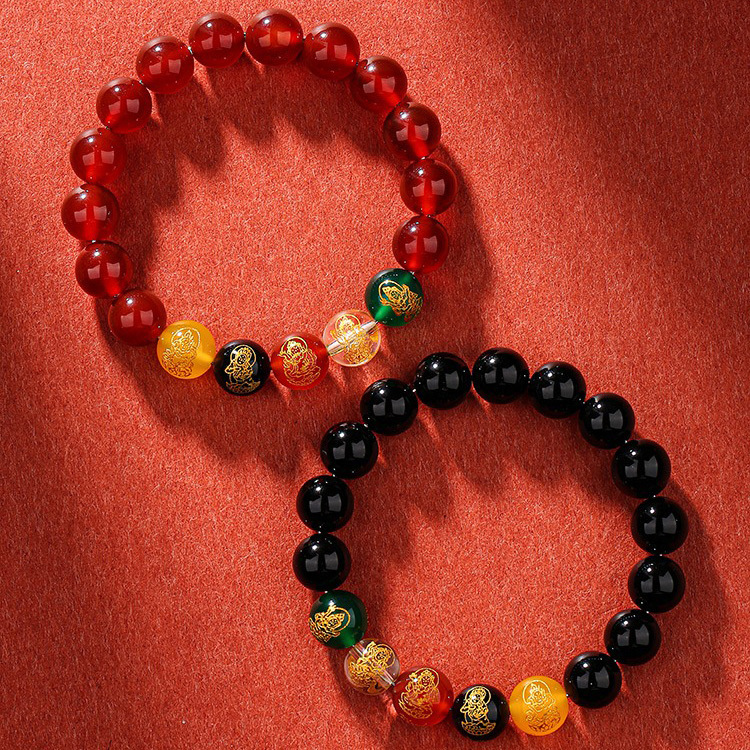 Black Natural Red Agate Five-Color Good Luck God of Wealth Bracelet for Women's Birth Year Chinoiserie Non-Fading Bracelet Bracelet