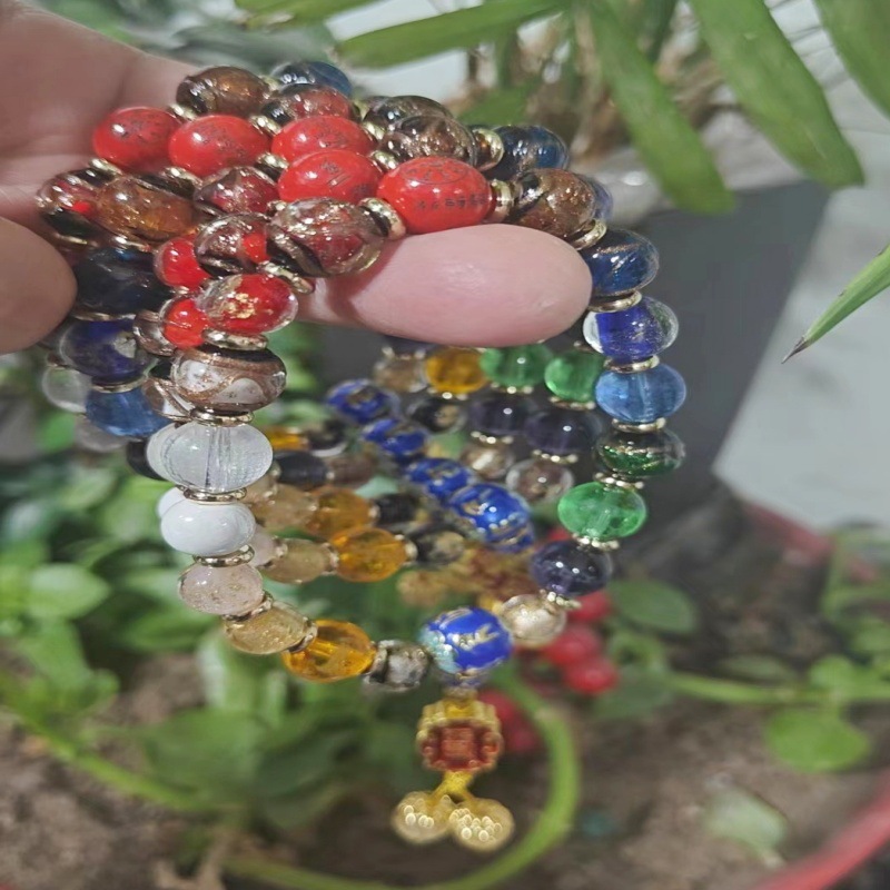 Ash Glass Eighteen Seeds Bracelet Ash Porcelain Bracelet Gold Foil Bantang Heart Agate Crystal Heart Sutra Eighteen Bracelet