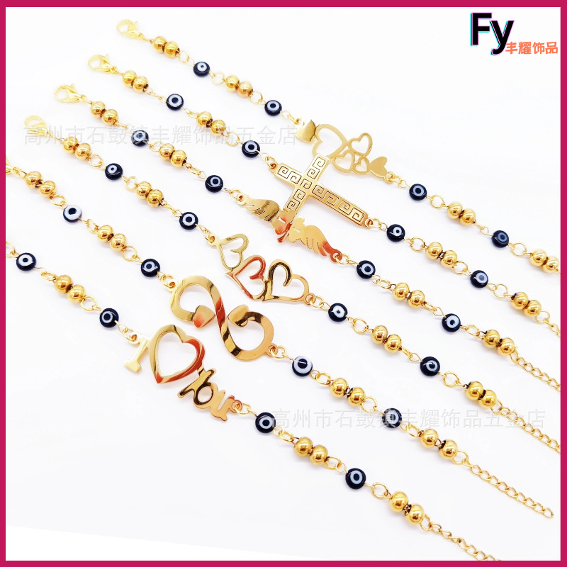 6mm stainless steel beads black eyes 2 to 1 curved brand bracelet cross-border hot sale religious bracelet cross bracelet