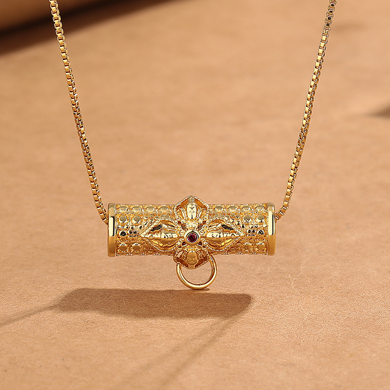 Vintage Thai Buddha Brand Long Po Xingfu Tube Necklace Women's Light Luxury High-end Fashion Personality All-match Creative Jewelry