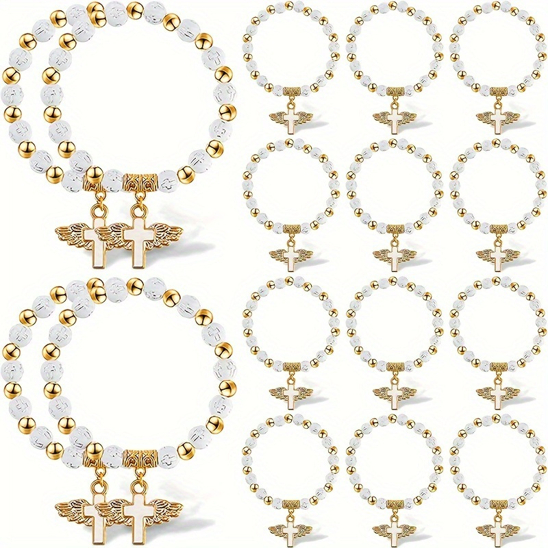 Cross-Border Hot-Selling Heart Wings Cross Baptism Communion Rosary Bracelet Prayer Wedding Party Beaded Handmade