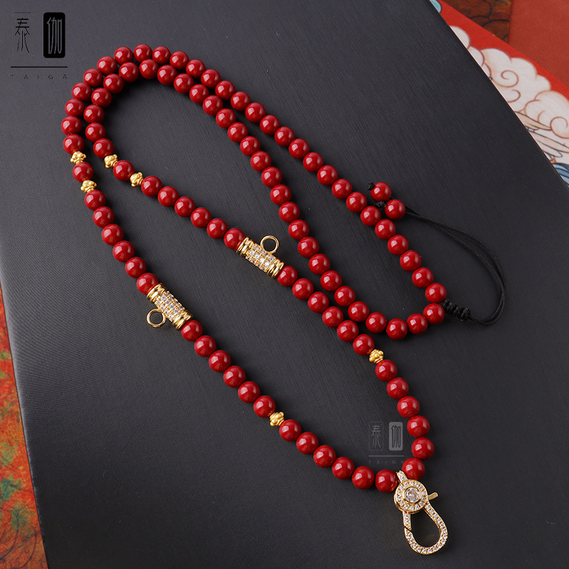 Thailand Buddha Brand Chain Cinnabar Pearl Chain Necklace Thangka Lanyard Full Diamond Quick Detach Buckle Three Hanging Five Hanging Single Adjustable