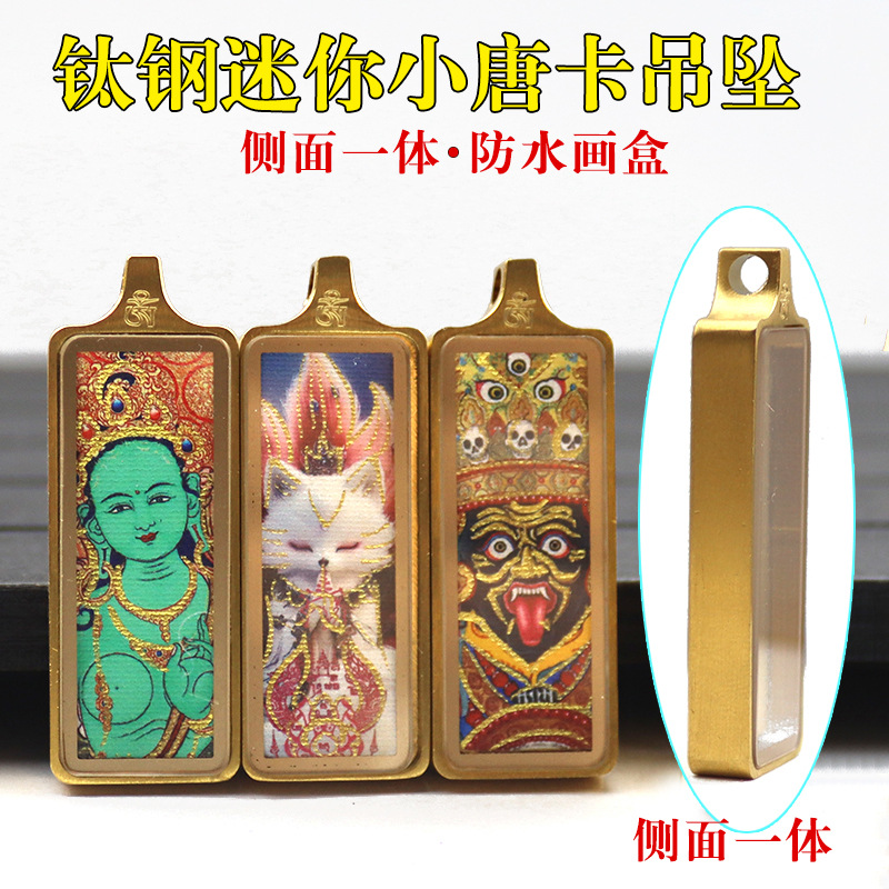 Titanium Steel Small Thangka Pendant Hand-Painted Gold Zodiac Patron Saint Yellow God of Wealth Past and Present Portable Buddha Amulet Necklace