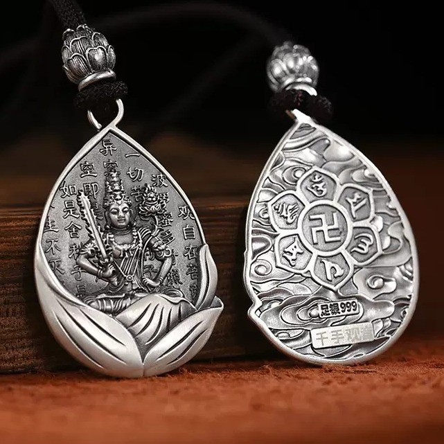 Vintage Buddha necklace old silver maker 999 sterling silver Buddha pendant men's trendy Zodiac Guardian God
