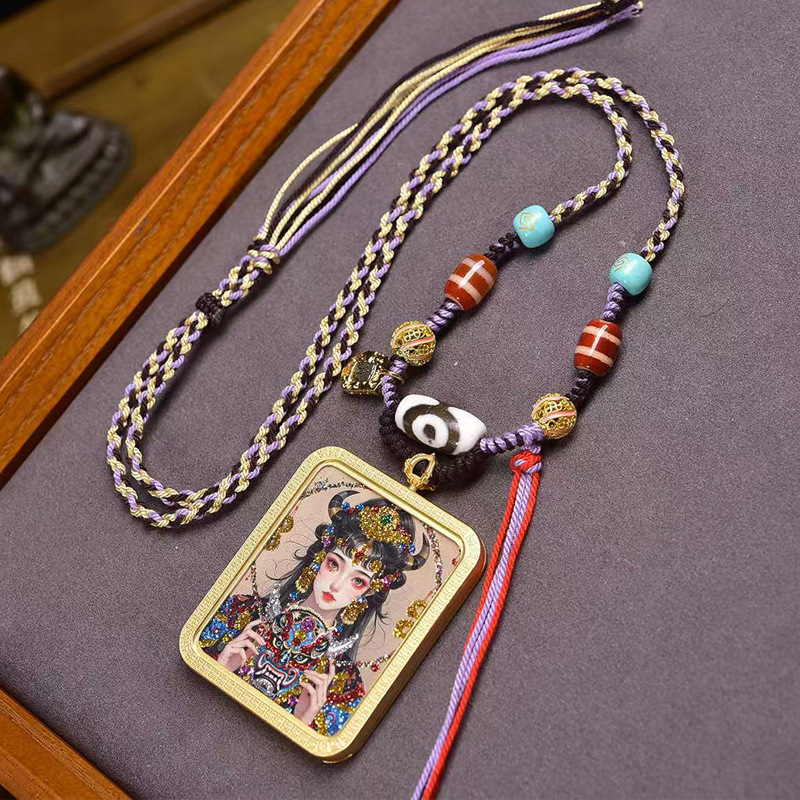 Xizang Hand-painted Thangka Past and Present Buddha Pendant Hand-woven Rope Necklace Pendant Xizang-style Neck Sweater Chain