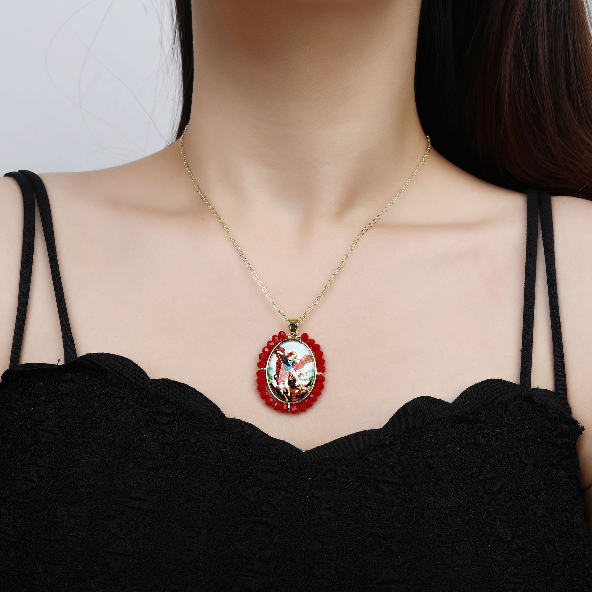 European and American Cross-border Retro Personality Wear Crystal Beads Oval Religious Virgin Father Pendant Necklace Clavicle Chain Jewelry
