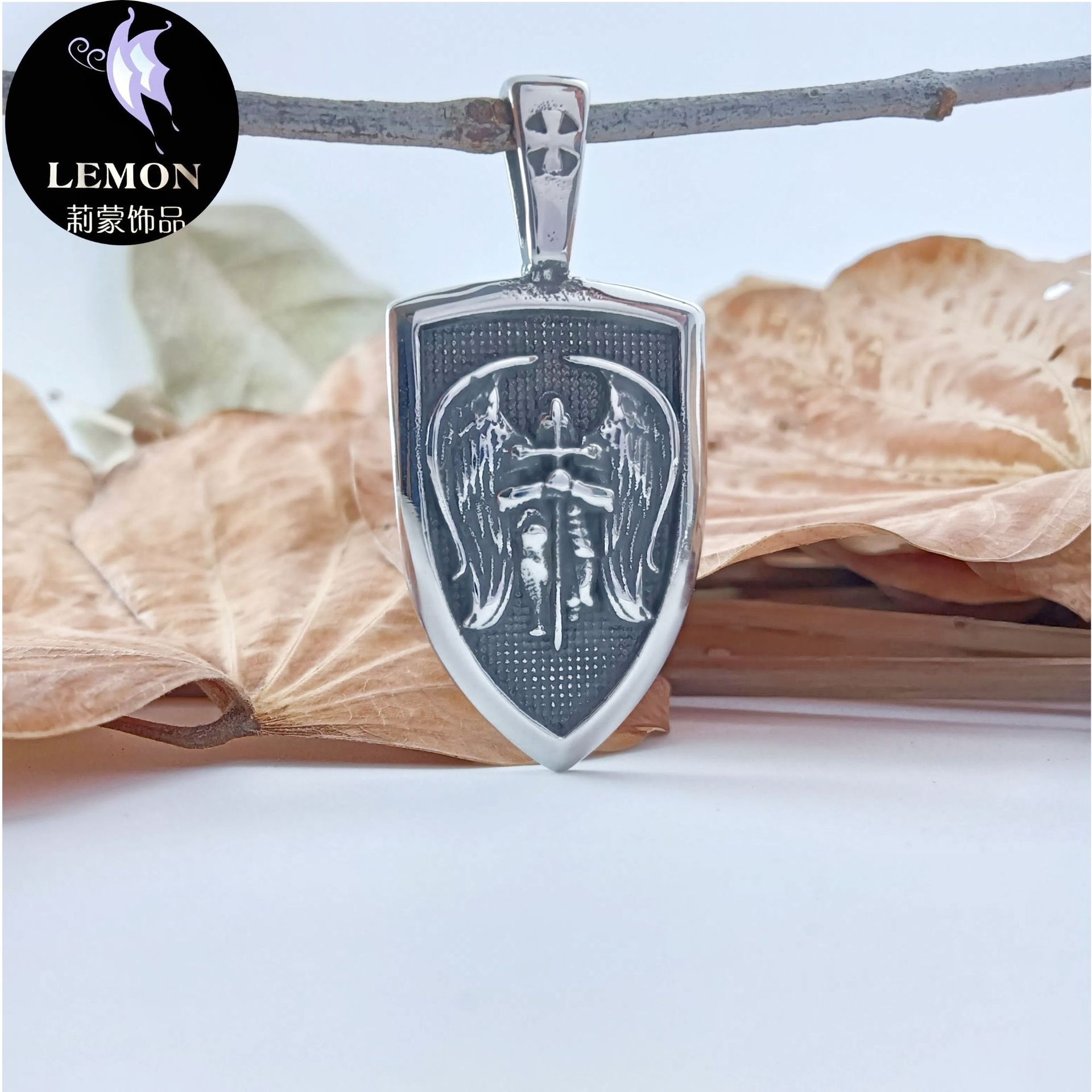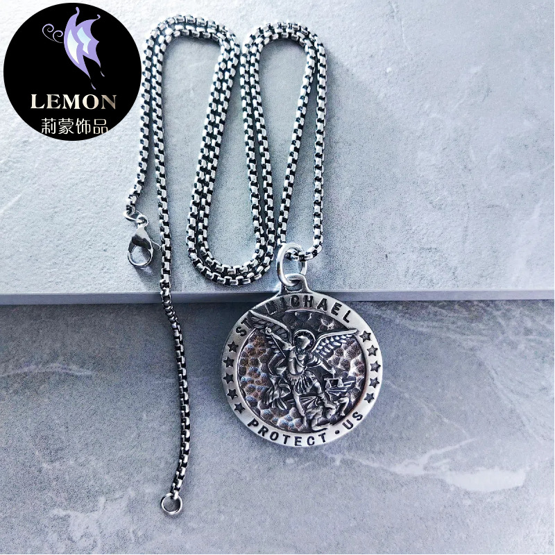 Amazon AliExpress stainless steel jewelry men and women punk vintage casting titanium steel guardian angel pendant necklace