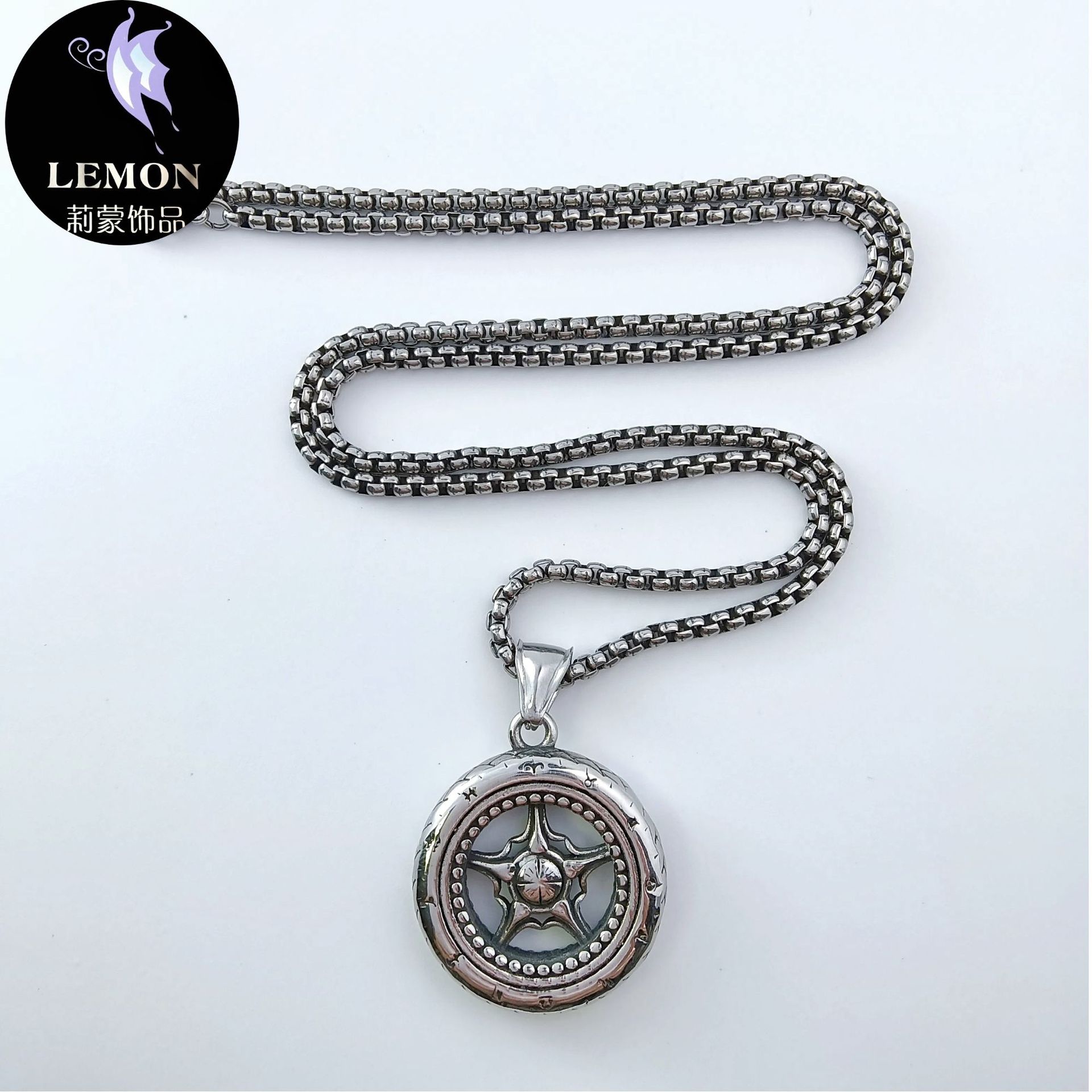 Cross-border AliExpress Amazon retro titanium steel stainless steel jewelry pentagram tire pendant pendant necklace