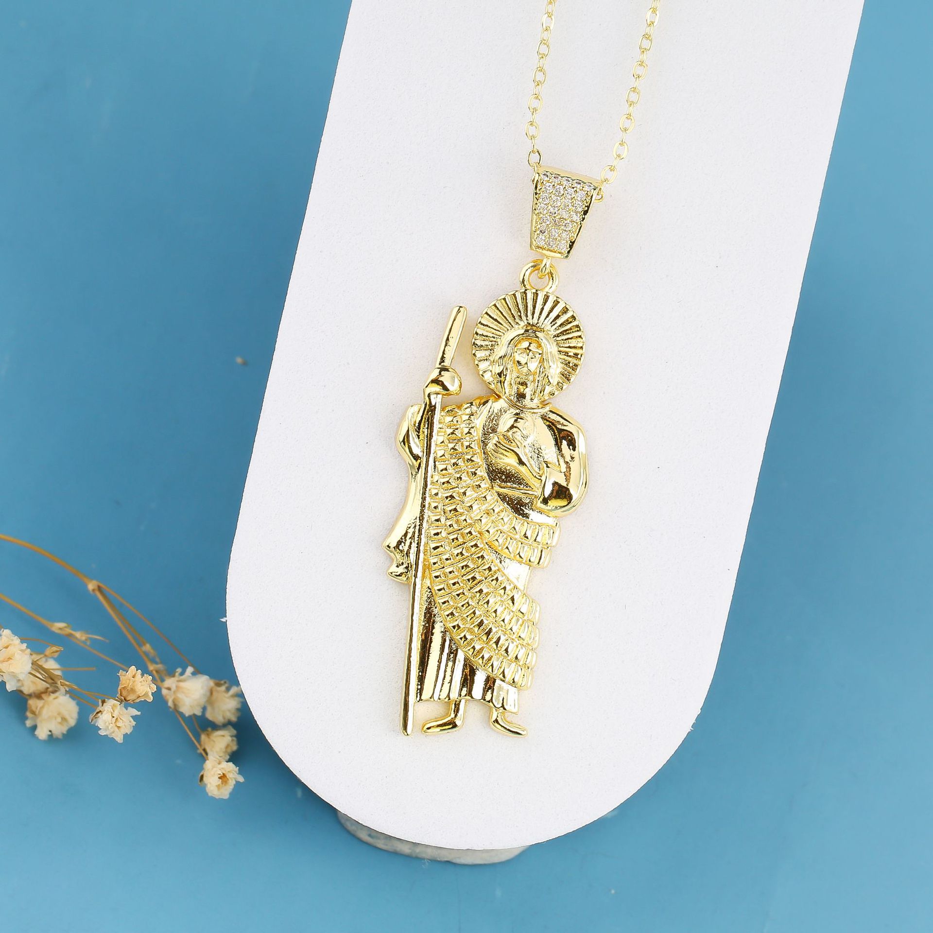 European and American Cross-Border Classic Retro Copper Inlaid Zircon Saint-German Pendant Necklace for Men and Women with Exaggerated Religious Clavicle Chain