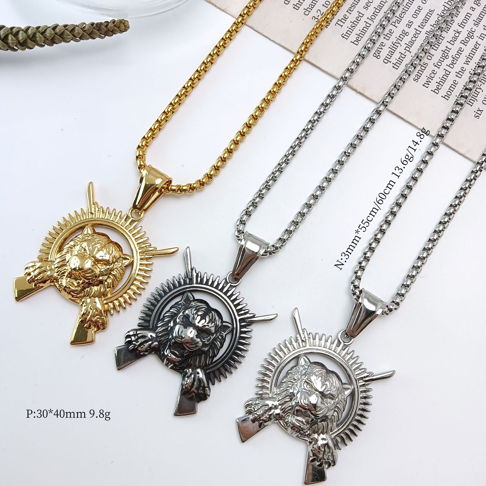 in stock a generation of cross-mirror double gun tiger lion titanium steel stainless steel pendant necklace men's and women's accessories jewelry