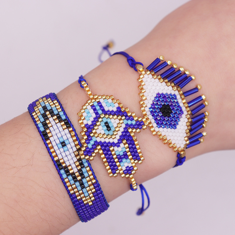 New Blue Devil eye miyuki bracelet simple geometric religious totem Fatima Palm rice beads bracelet