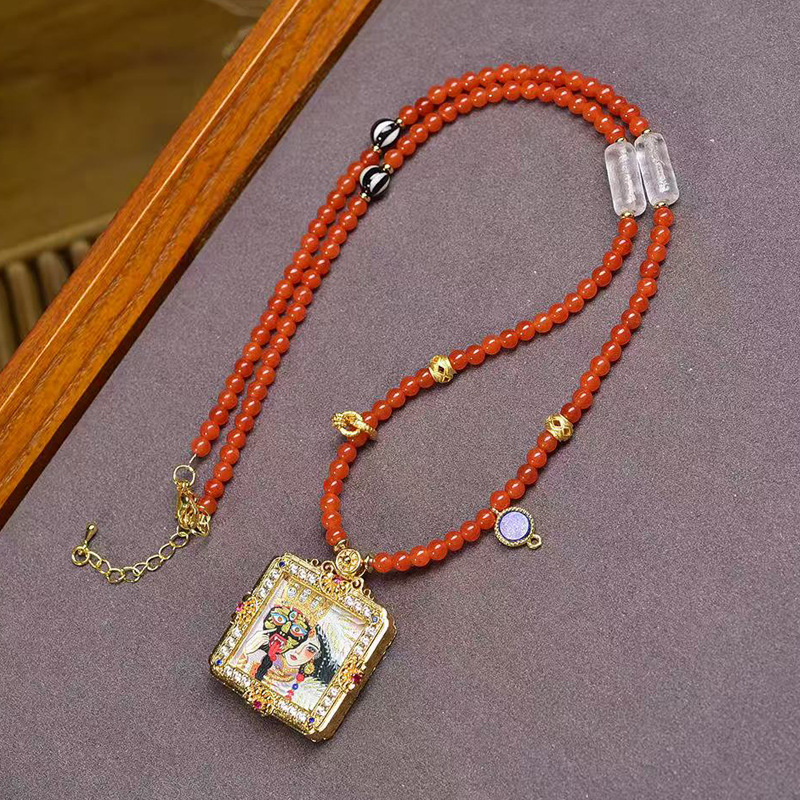 Natural Red Agate Necklace Xizang Style Tanjiram Small Thangka Buddha Pendant Medicine Buddha Pendant Sweater Chain