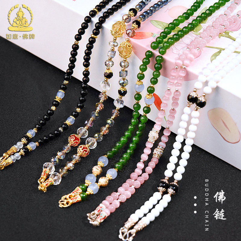 Thailand Buddha chain crystal Buddha chain New Obsidian pink necklace hanging chain men's and women's wholesale bamboo craft