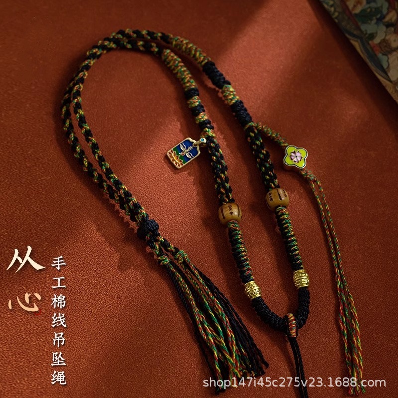 Xizang Handmade Fine-woven Pendant Rope Neck Cloisonne Ethnic Style Thangka Buddha Beeswax Pendant Necklace with Rope