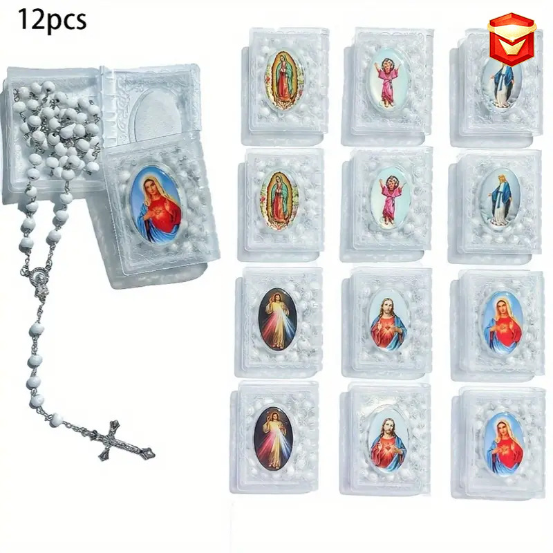 Cross-Border 6mm Wooden Long Rosary Cross Pendant Necklace Religious Figure Mary Baptism Communion Prayer
