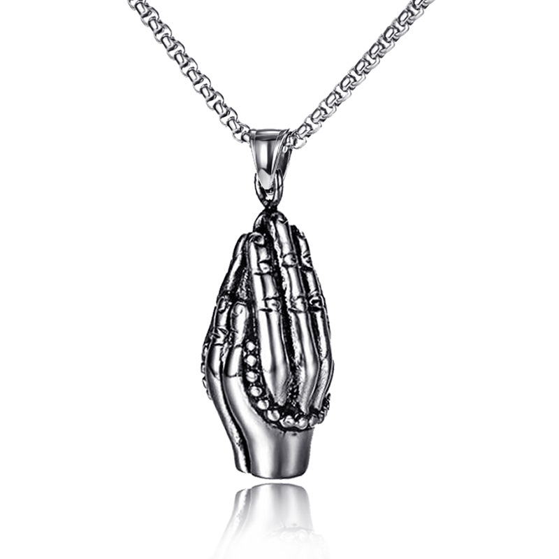 Faith Hands Prayer Necklace Religious Faith Stainless Steel Alloy Amitabha Buddha Pendant Jewelry One Piece Wholesale